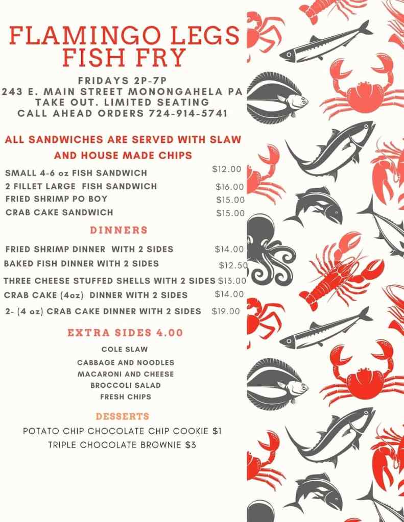 Flamingo Legs Comfort Food and Catering is located at the confluence of Pigeon Creek and the Monongahela River at 243 East Main St., Monongahela, Pa. It’s a great location, right at the bottom of Cemetery Hill across from Lenzi’s Restauraunt. In addition to the restaurant they also will have their food truck parked in front of their building in the parking lot during Lent.